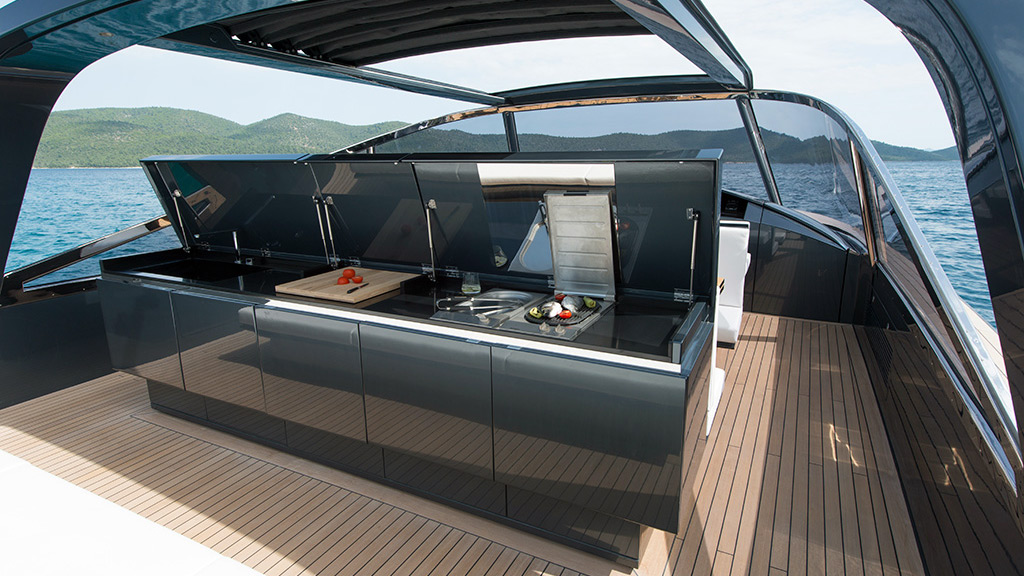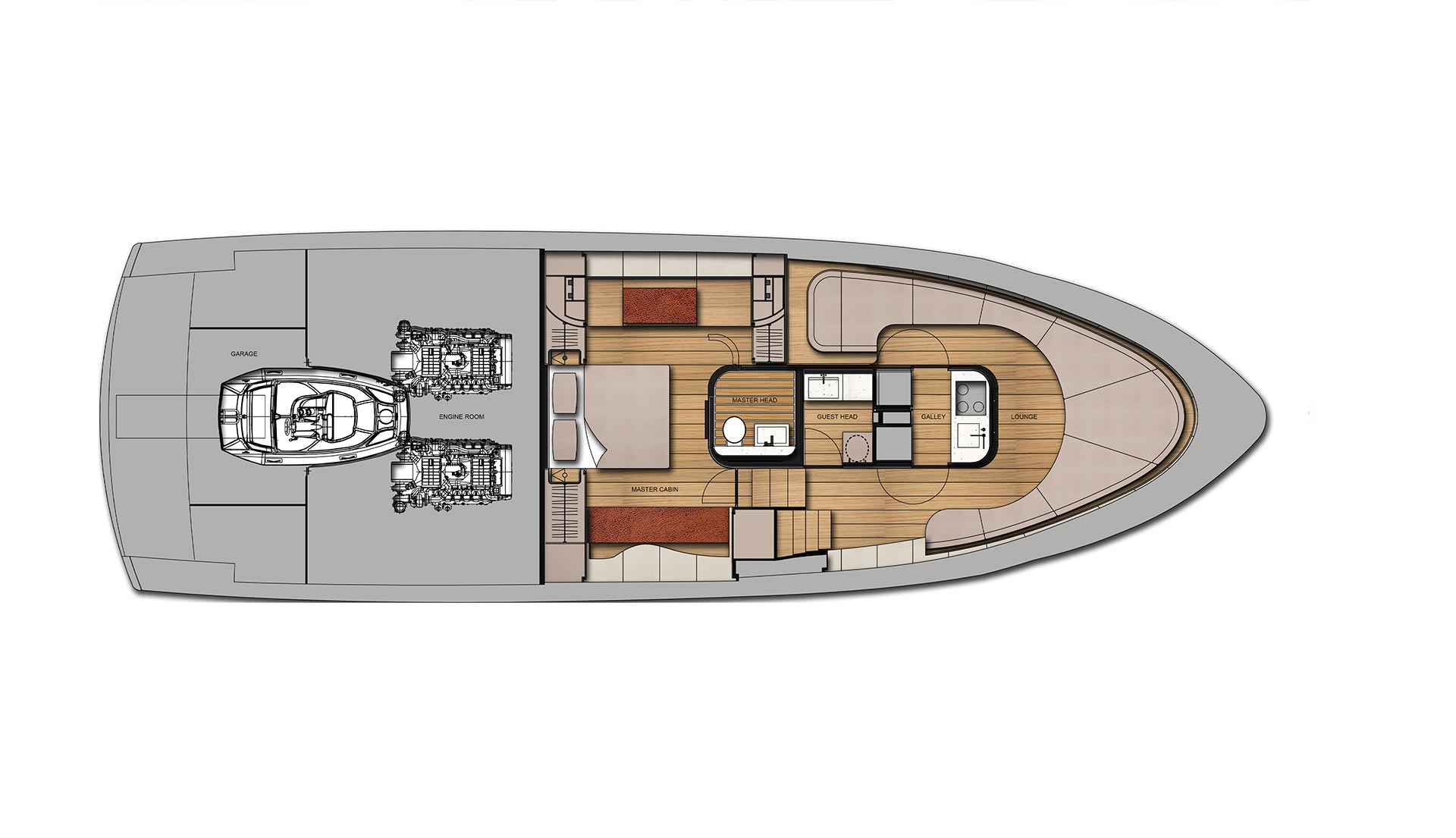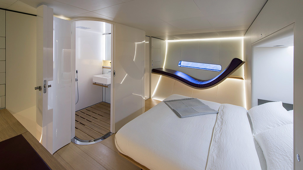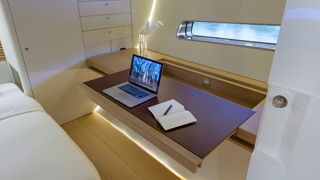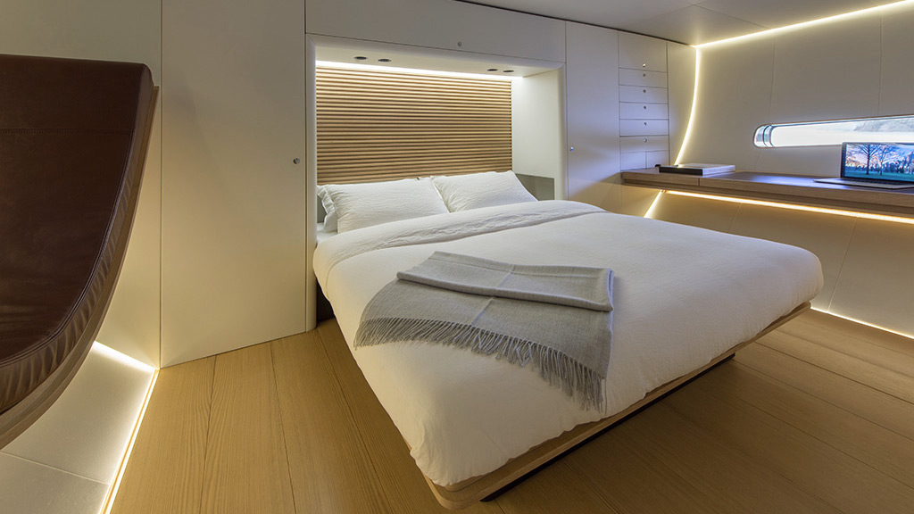 The Alen 68 has 20% more volume than most comparable motor yachts, creating more walk-around deck space and more scope for fresh design thinking. In a break with tradition, the flowing contours of the hull are not hidden by furniture but exposed to reveal the smooth lines of the yacht. This creates space for a flexible ‘pod’ system of up to 3 cabins.
