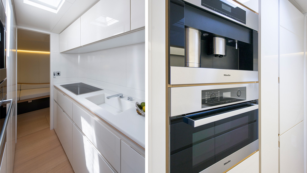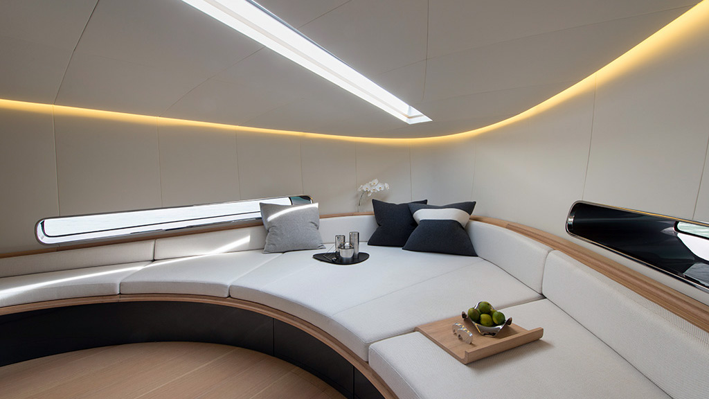 With a refined palette of materials including bleached oak, white leather and white onyx, the yacht’s understated style is ever present. Beneath the surface, her advanced technology confirms that land architects and boatbuilders are a potent combination.